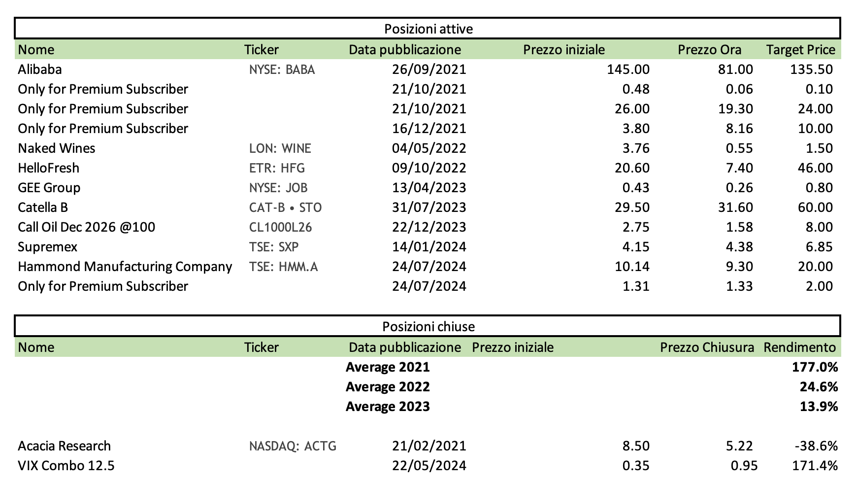 I commenti inseriti su questo sito rappresentano la mia personale opinione e non sono volti ad incitare l'acquisto o la vendita di alcun titolo. Sebbene le informazioni al momento della pubblicazione siano accurate e veritiere, data l’imprevedibilità del mercato possono cambiare in maniera repentina e senza preavviso. Inoltre, gli obiettivi d’investimento e la tolleranza al rischio sono assolutamente soggettivi e personali. I lettori, sono incoraggiati a cercare una consulenza finanziaria esterna e a fare sempre la propria ricerca sugli investimenti. L’ “analista finanziario” e la newsletter dell’investitore intelligente non saranno ritenuti responsabili per eventuali perdite o guadagni generati dall'adozione d’idee d’investimento provenienti da questo blog (o da qualsiasi altra fonte da me diffusa elettronicamente).
