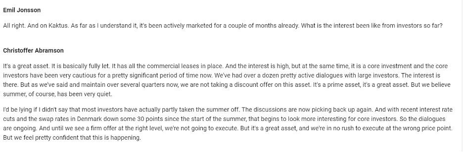 Guardando al futuro, Catella rimane in una posizione favorevole con ben SEK 950m in cash e con la possibilità di vendita dei propri asset.